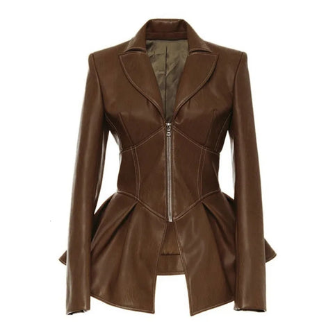 Unleash your inner rebel with our Biker Style Patchwork Irregular Leather Jacket. Crafted for those who crave the extraordinary, this jacket is a fusion of timeless elegance and contemporary coolness. With its lapel collar, long sleeves, and high waist design, it's the epitome of fashion-forward statement wear.