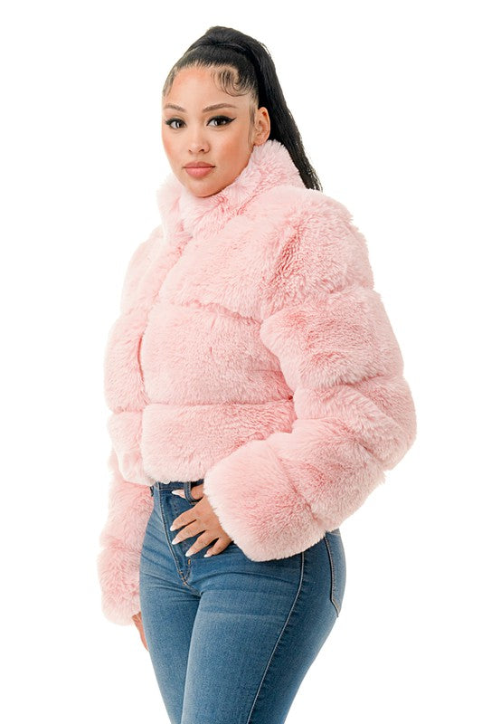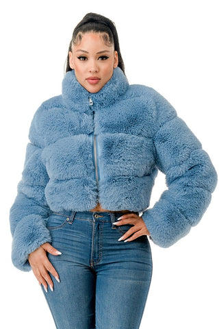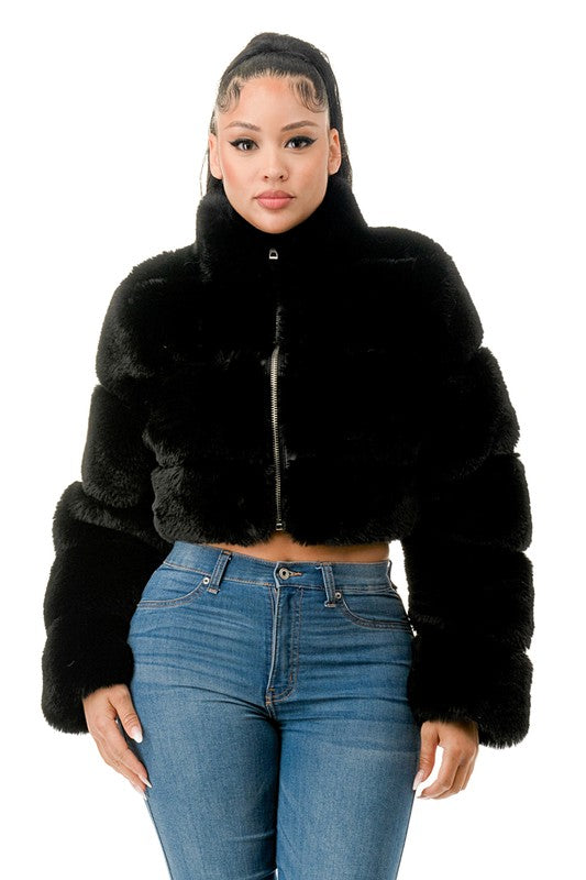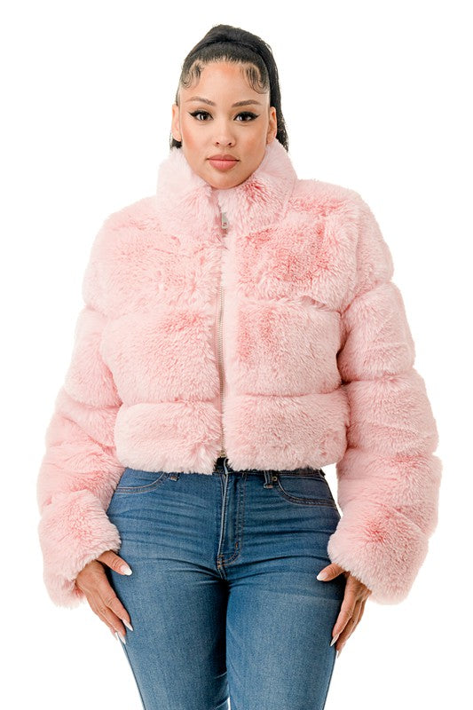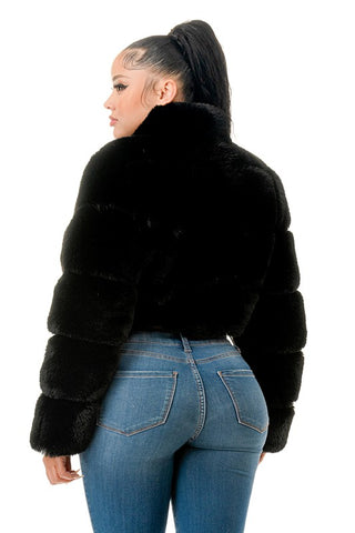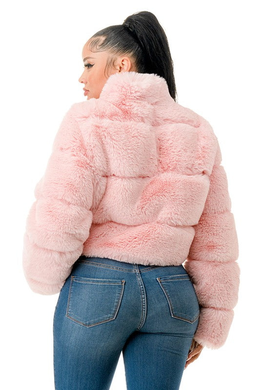 All Over Fur Jacket -Zip Up -Side Pockets -Model is wearing size small -Self: 100%Polyester -Lining: 100%Polyester