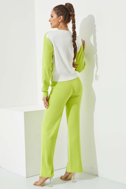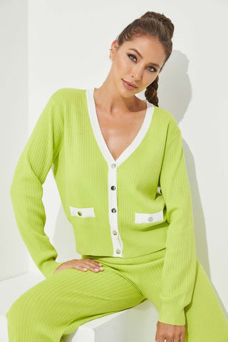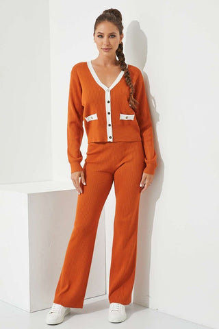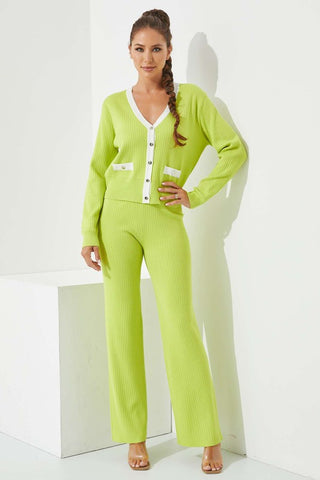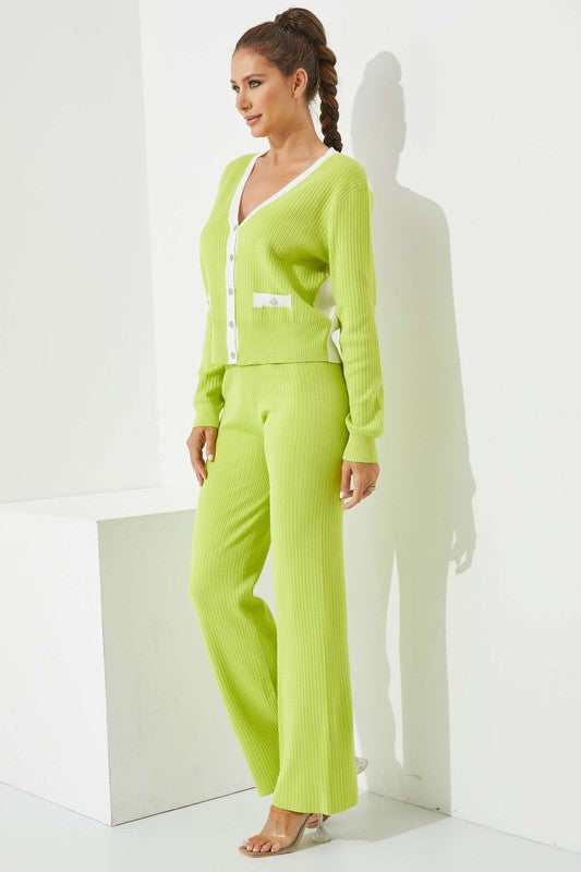 CARDIGAN - LONG SLEEVE - BUTTONS - FAKE POCKET - KNIT PANTS - LONG - ELASTIC WAIST - KNIT - 31" INSEAM