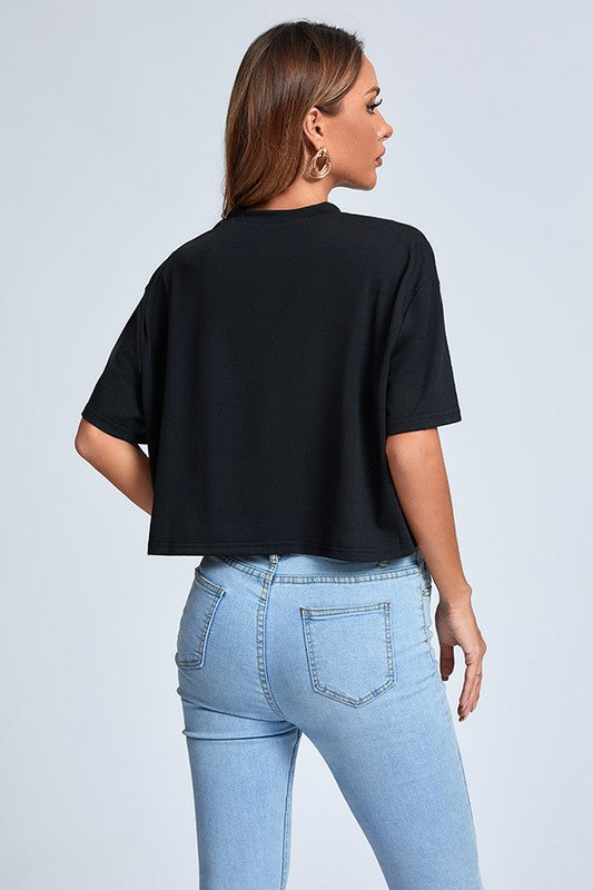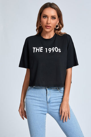 Letters Printed Short Sleeve T-shirt Fabric: polyester, spandex