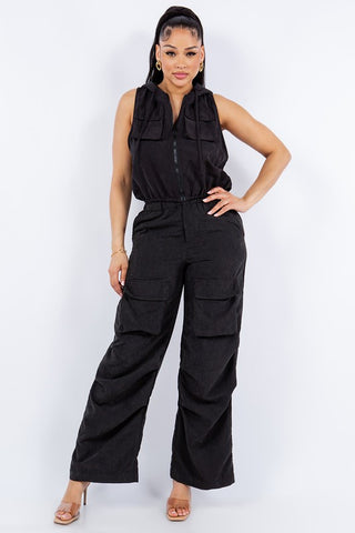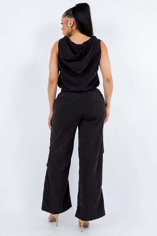 SET HOODED VEST AND BAGGY TROUSERS WITH FRONT POCKETS CARGO STYLE Fabric Contents