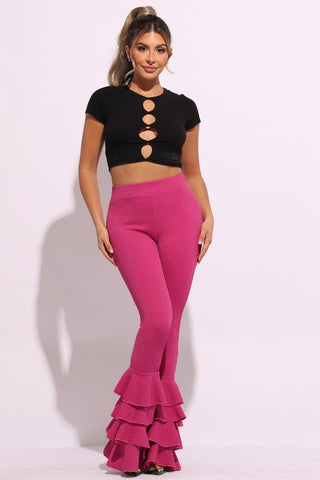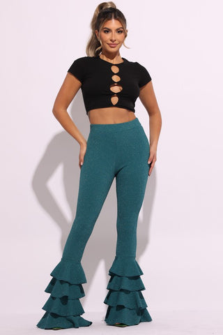 Elevate your fashion game with our Layered Ruffle Flare Pants. These trendy pants feature layers of ruffles and a flattering flare leg design, creating a statement piece that's perfect for special occasions, parties, and evenings out. Layered ruffles: Add a playful and stylish touch to your outfit. Flare leg style: A flattering and eye-catching silhouette that exudes