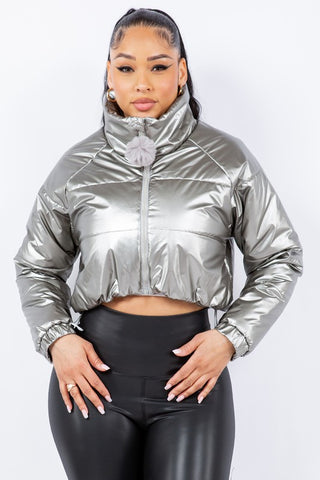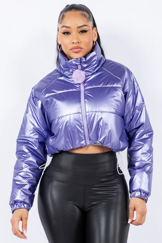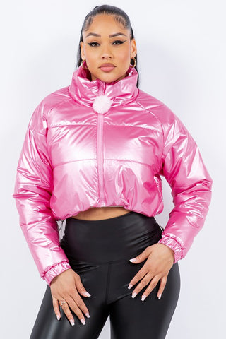 PUFFER BUBBLE JACKET, FUNNEL NECK, FRONT ZIPPER CLOSURE, LONG SLEEVES, CROPPED HEMMING WITH STONE ACCESSORY ON THE ZIPPER Fabric Contents